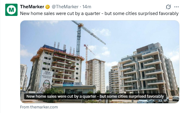 Why is the sale of new homes in Israel cut by a quarter? Because of the ‘Soft Extinction’, namely too many Jewish Israelis left Israel for good, including selling their homes, so the Israeli home market within the ‘Green Line’ has more sellers than buyers. ‘Normal’ Jewish people don’t want to live in a Fascist-Zionist state that conducts genocide and War-Crimes, especially not to participate in genocide and War-Crimes. ZRB