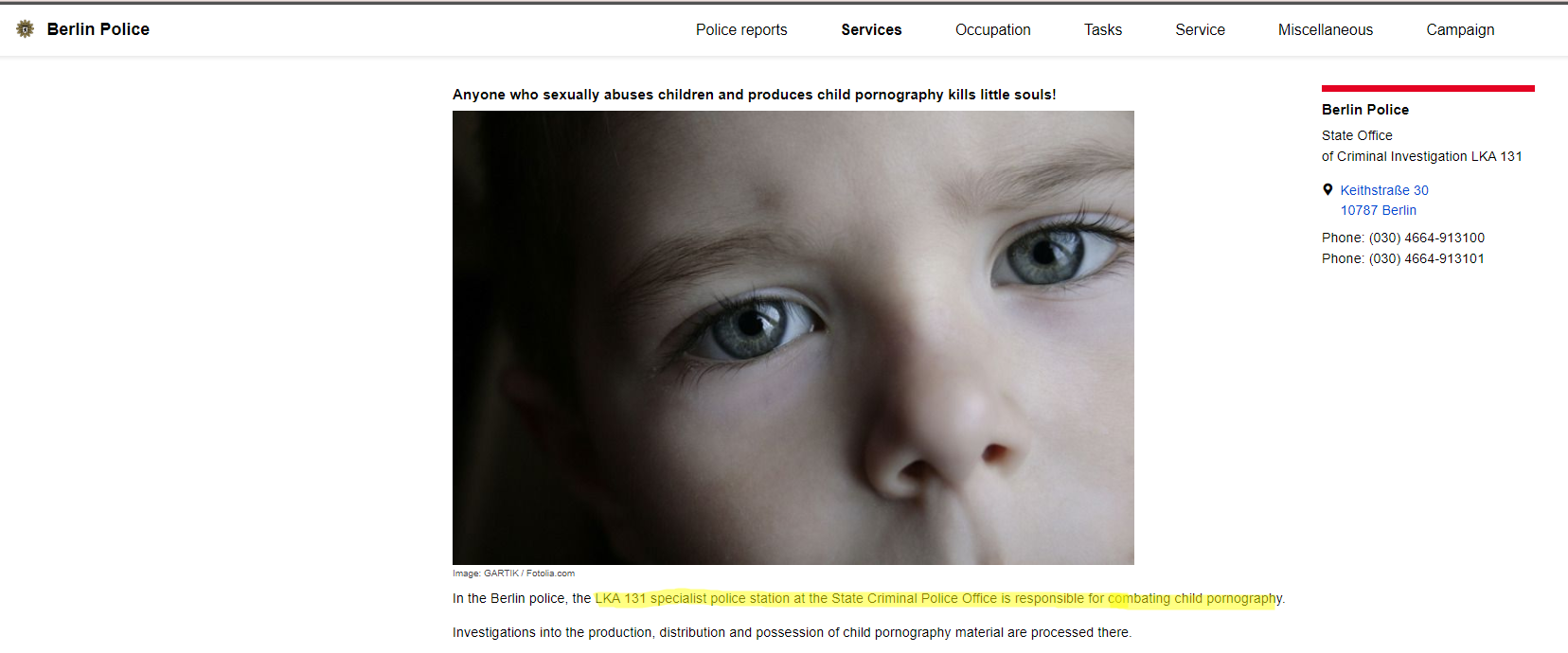 OP185, Obstruction of Justice by Berlin Police: Complaint was given to LKA 1 Specialist in Offences Against Human Beings but Complaint was Forward to LKA 131 Specialist in Combating Child Pornography, https://www.rozen-bakher.com/iccg-announcements/op185, E104, Berlin Police, Germany