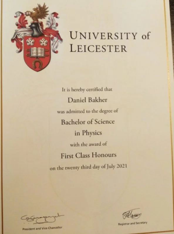 Daniel Bakher - Certificate EducationB.Sc. in Physics (First Class Honours), Leicester University, England, UK