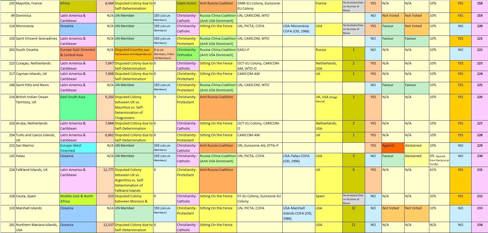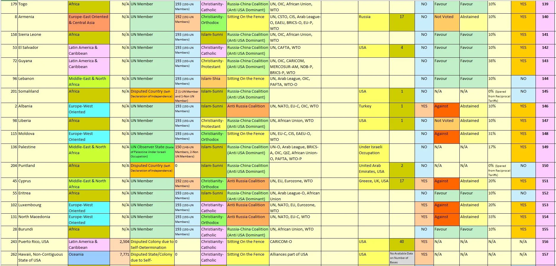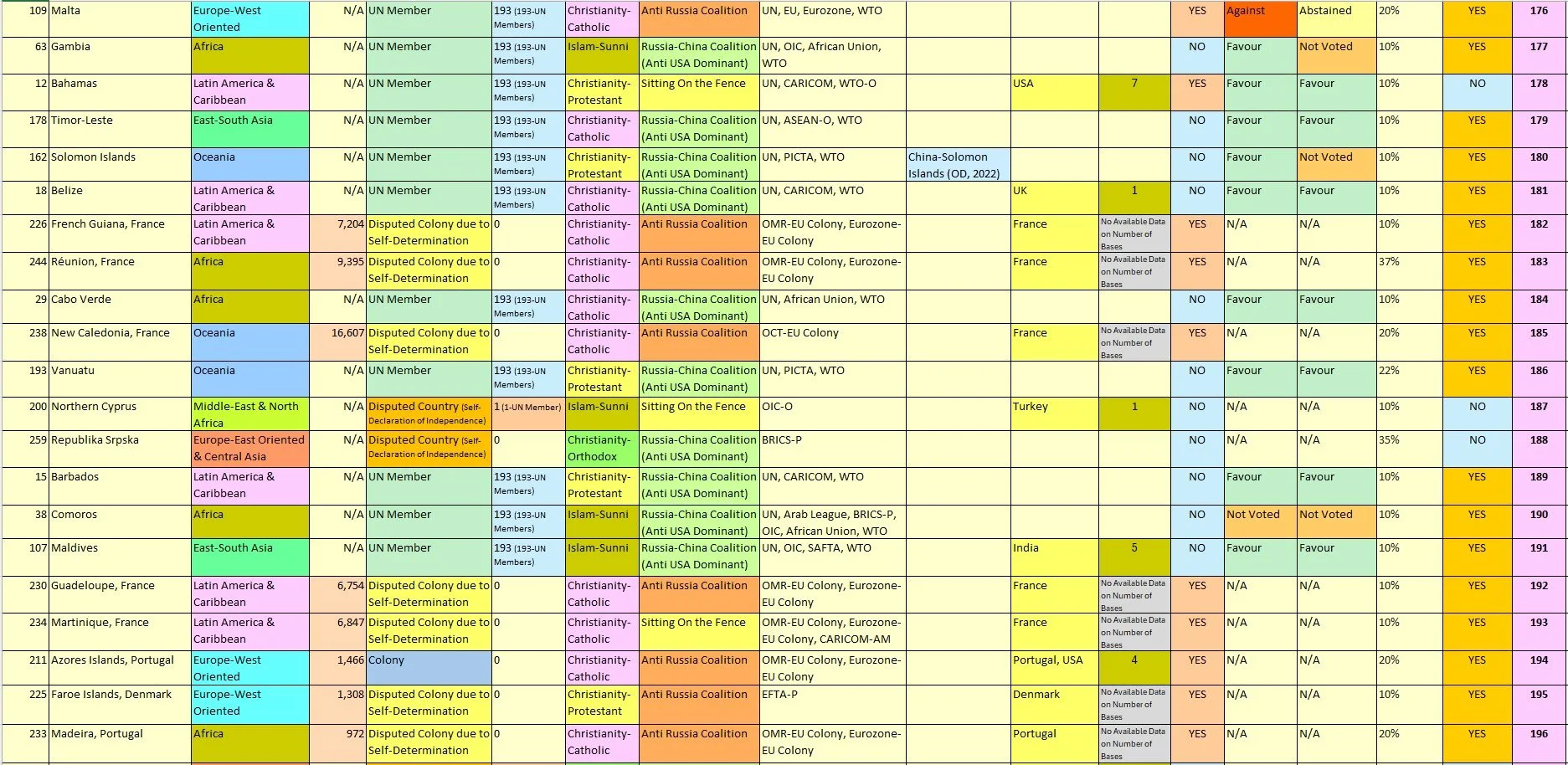 Section E39. Comparison of Region, Religion, Sovereignty, Colonies, International Recognition, Alliances, Coalitions, Superpowers, & UNSC, 2024 Global Survival Rank (GSR) by Dr. Ziva Rozen-Bakher, https://www.rozen-bakher.com/gsr/2024/e/39