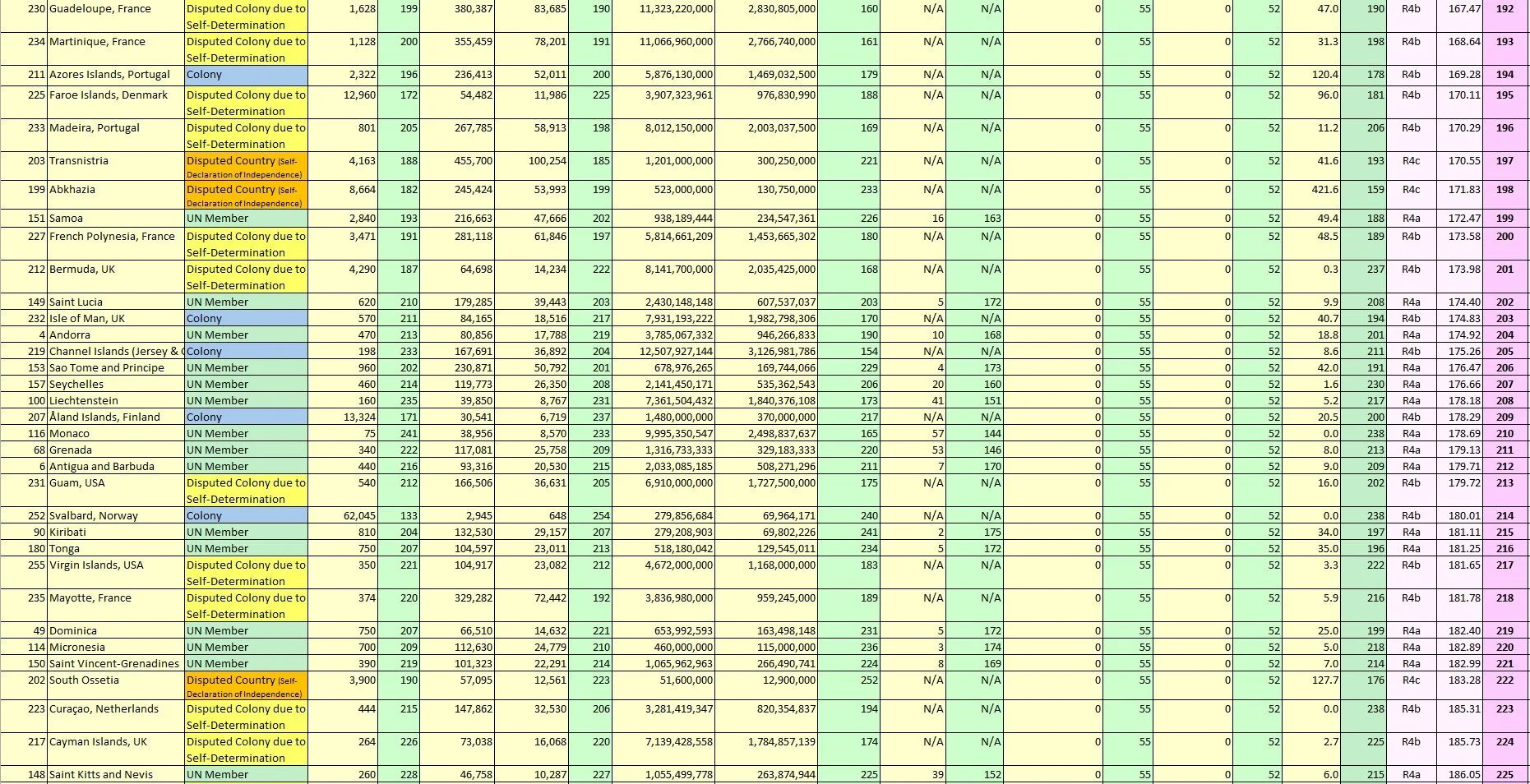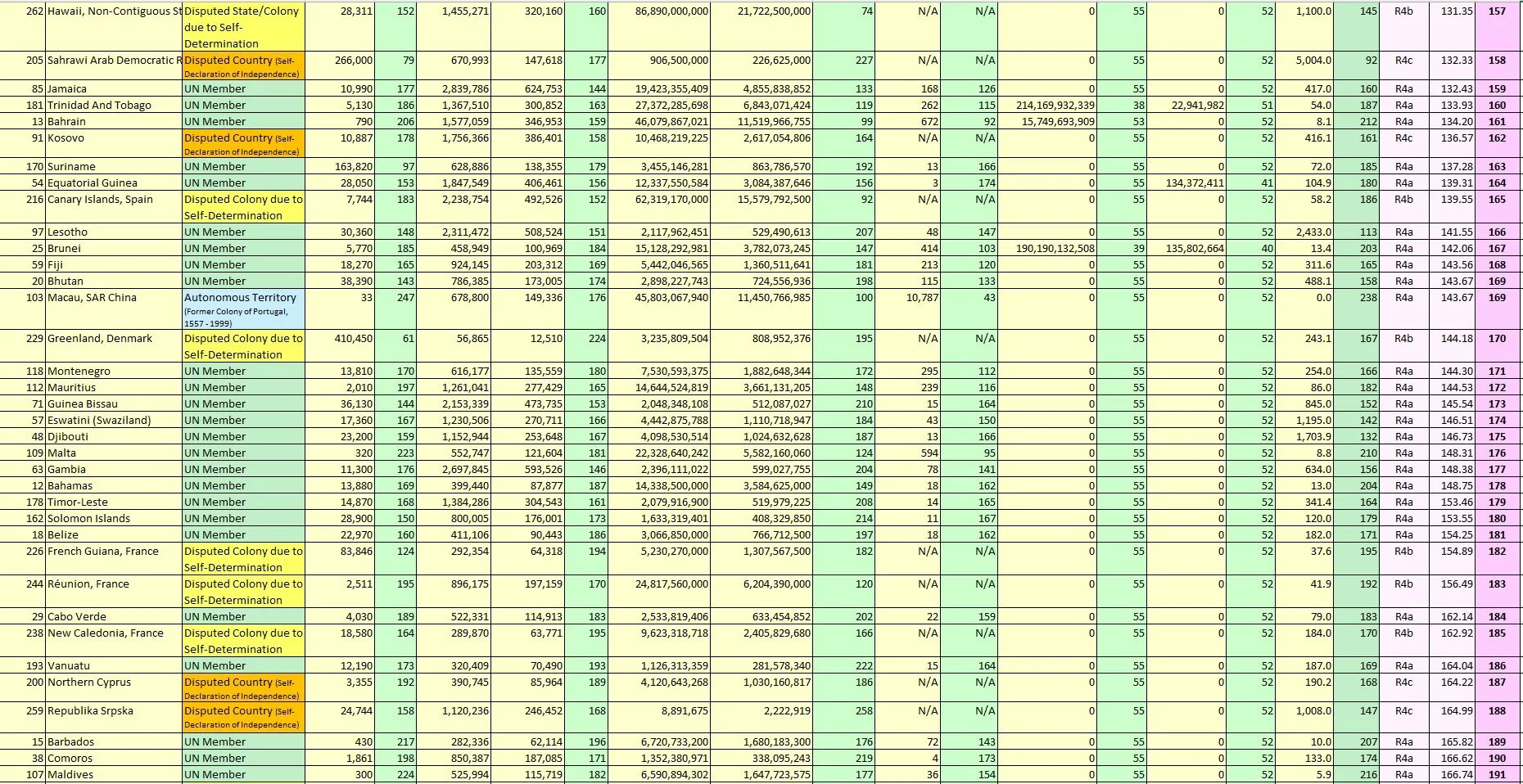 Section E10. All Countries and Colonies by Sovereignty Status, 2024 Global Survival Rank (GSR) by Dr. Ziva Rozen-Bakher, https://www.rozen-bakher.com/gsr/2024/e/10