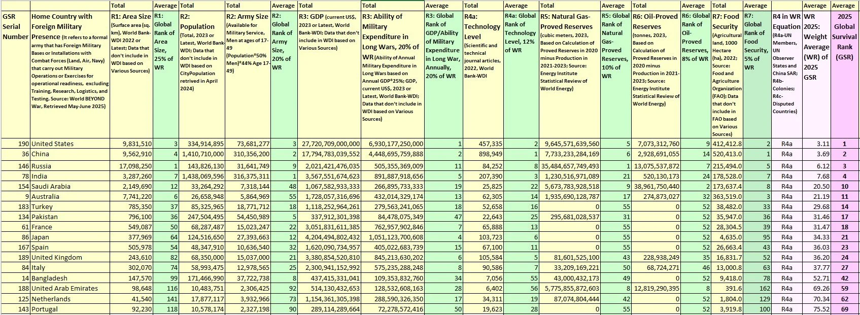 Section F3. Comparison of Home Countries with Foreign Military Presence, 2025 Global Survival Rank (GSR) by Dr. Ziva Rozen-Bakher https://www.rozen-bakher.com/gsr/2025/f/comparison-fmp
