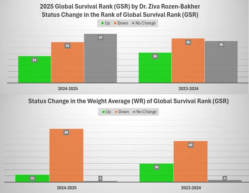 For Full Details: Section E5. Comparison Year-Over-Year (YOY) of 2023GSR/2024GSR/2025GSR, 2025 Global Survival Rank (GSR) by Dr. Ziva Rozen-Bakher https://www.rozen-bakher.com/gsr/2025/e/gsr-2023-2025