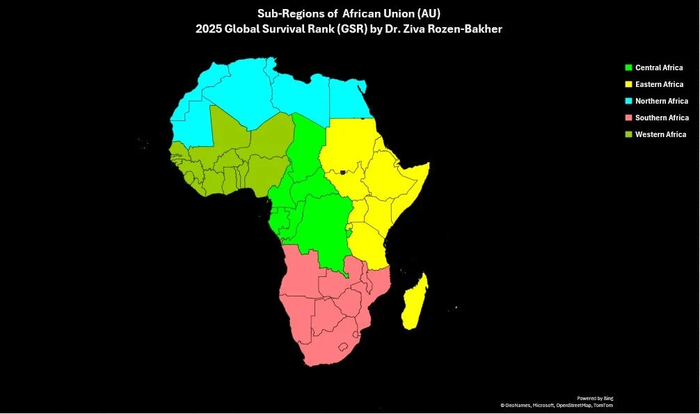 Table 62. Sub-Regions of African Union (AU), sorted by 2025 Global Survival Rank (GSR)