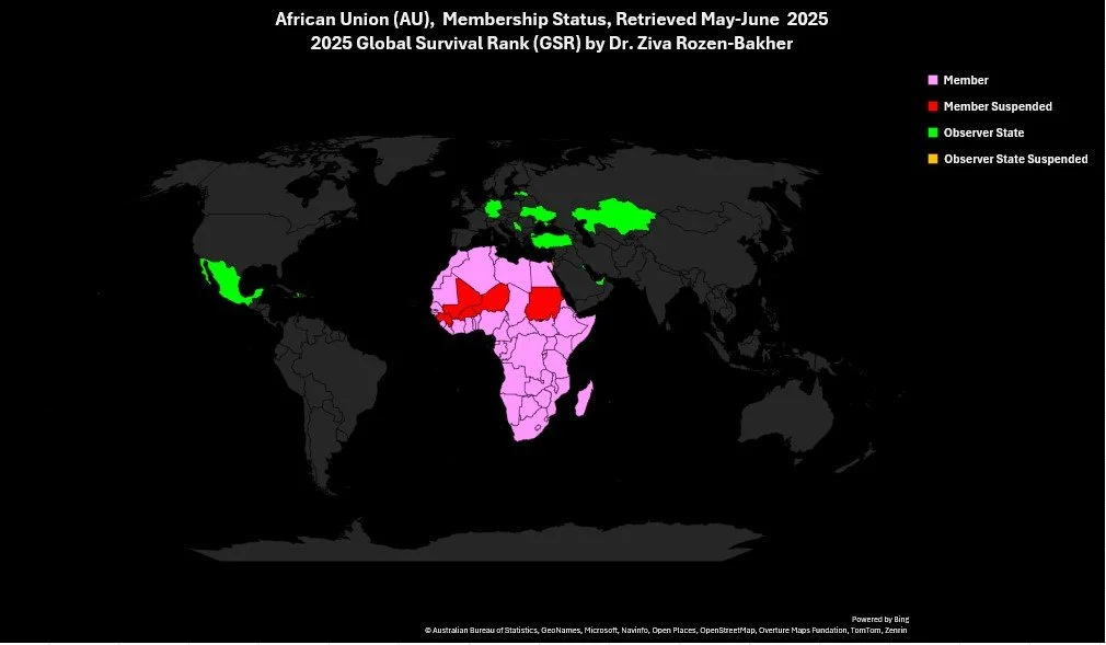 Section E11. African Union - Multilateral Alliance: African Union (AU) and its Regional FTAs and African Standby Force (ASF), 2025 Global Survival Rank (GSR) by Dr. Ziva Rozen-Bakher