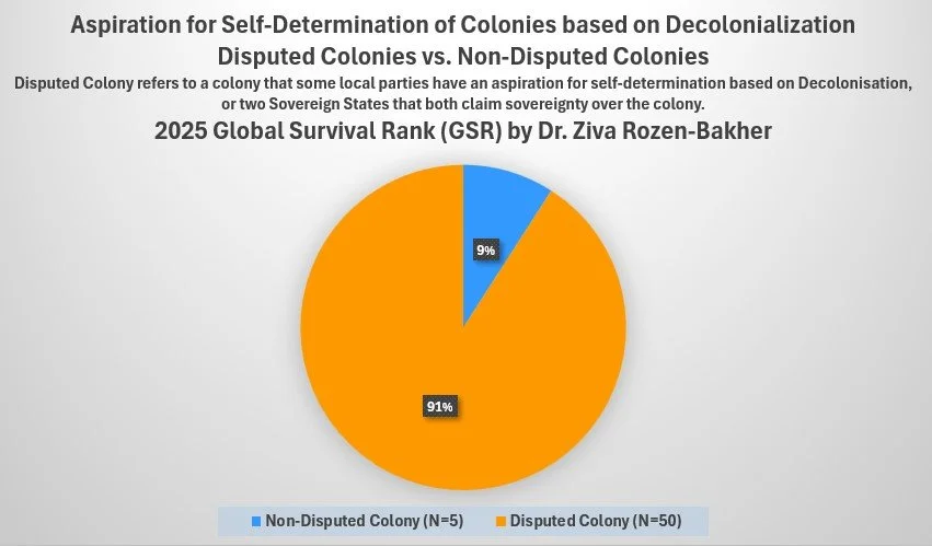 Table 26. Results of UN Vote on Decolonialism by UN Members, sorted by 2025 Global Survival Rank (GSR)