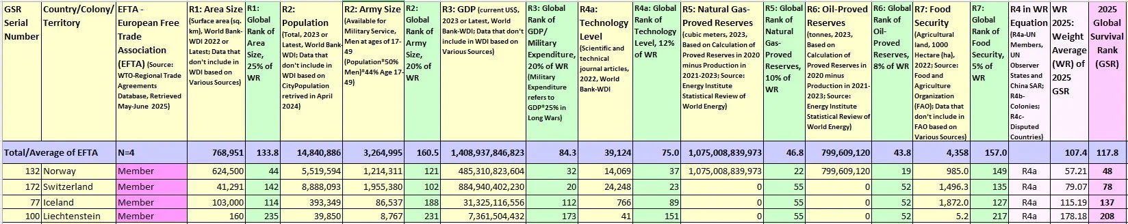 Section E21. EFTA - Multilateral Alliance: European Free Trade Association (EFTA), 2025 Global Survival Rank (GSR) by Dr. Ziva Rozen-Bakher