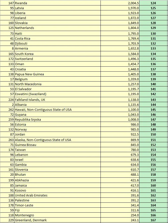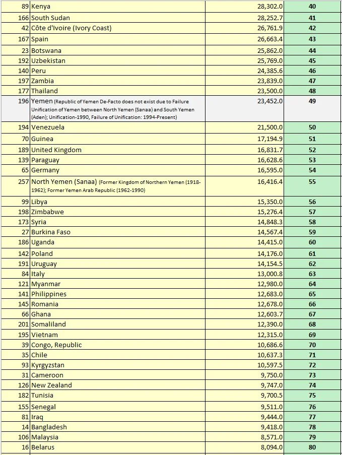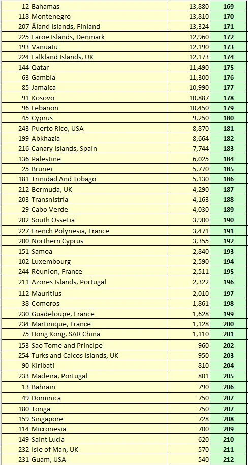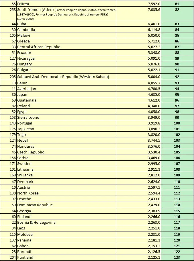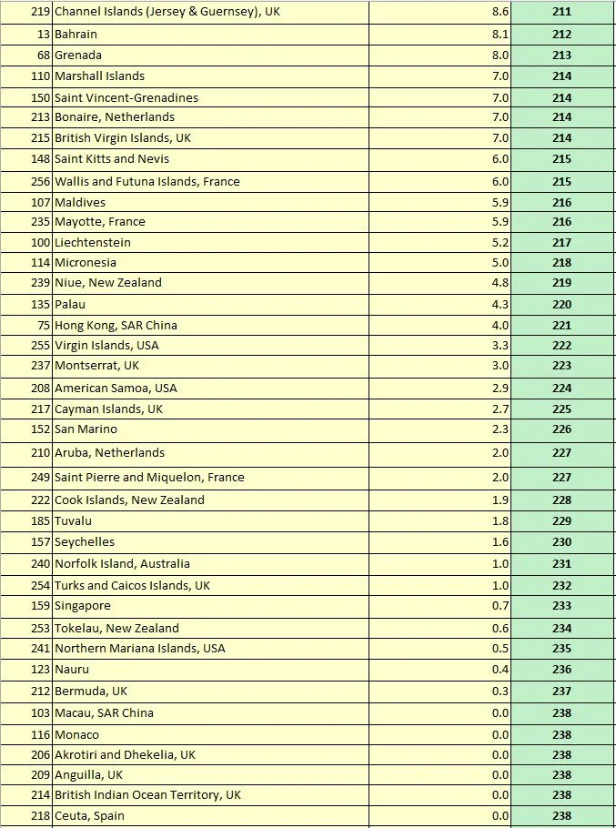 Table 32. Area Size Indicator (R1): All UN Members and Non-UN Members, sorted by the Rank of R1