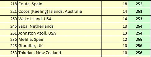 Section E4.3.4.2 Distance from Colony to Sovereign State Indicator (R4b) for Colonies, sorted by the Rank of R4b
