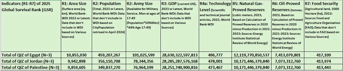 Table 135. Members of Each QIZ: Global Survival Rank Indicators (R1-R7), sorted by 2025 Global Survival Rank (GSR)