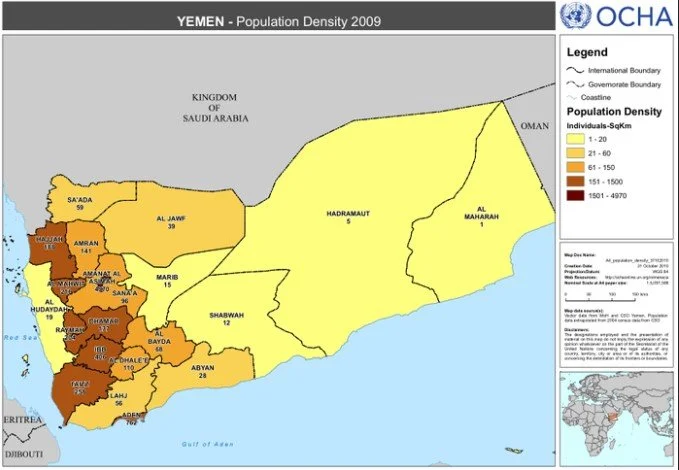 Map 68. Population Density of Yemen by the Administrative Divisions of Yemen