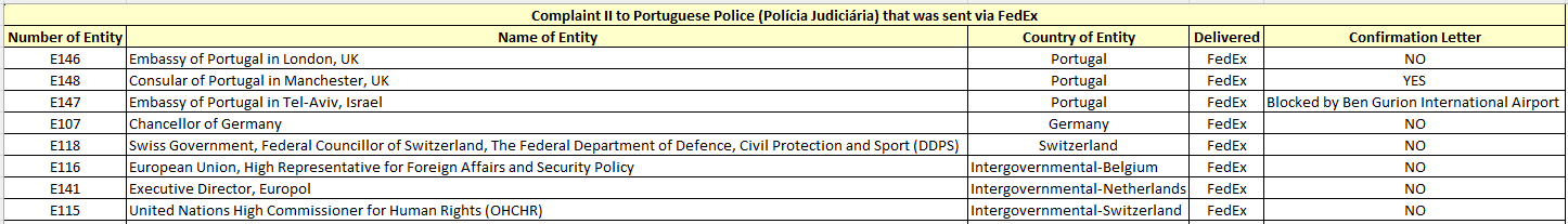 Important Note, regardless of the ‘problematic confirmations’ from FedEx that did not mention the Name or Address of any recipients, No confirmation letter or confirmation email for receiving the complaint was given directly from any recipients excluded a confirmation letter from the Consular of Portuguese in UK. Besides, any recipients did not give any response to these complaints.