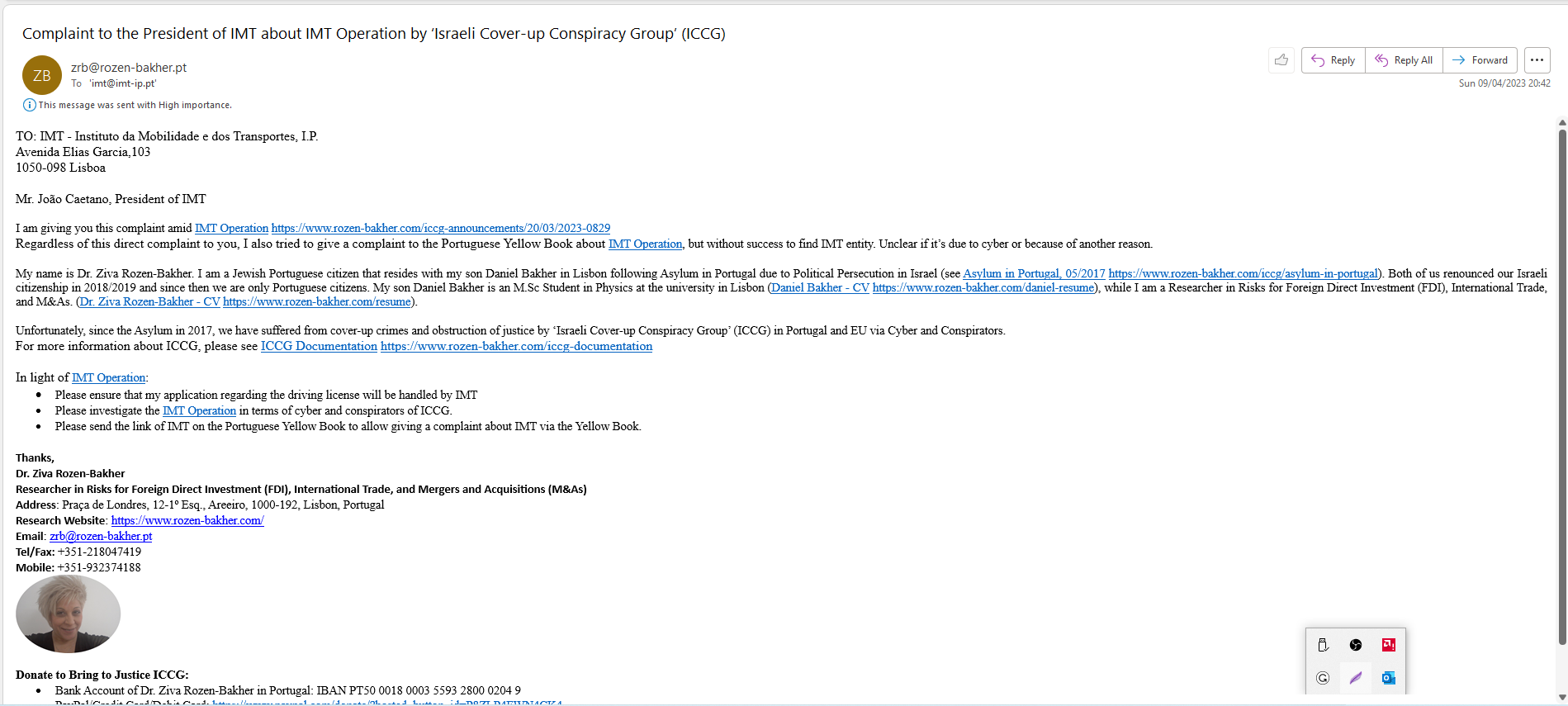 Complaint to the Portuguese Minister of Infrastructure about IMT https://www.rozen-bakher.com/iccg-announcements/30/05/2023-1808