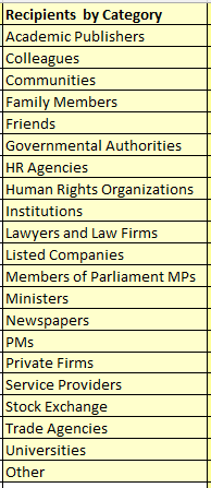 The Outcome of Sending 11 Emails to 9414 Recipients that include in the Contact List of Dr. Rozen-Bakher
