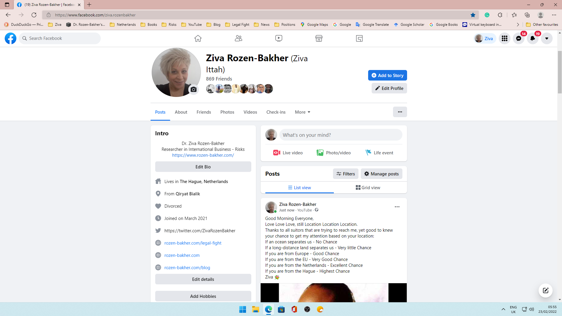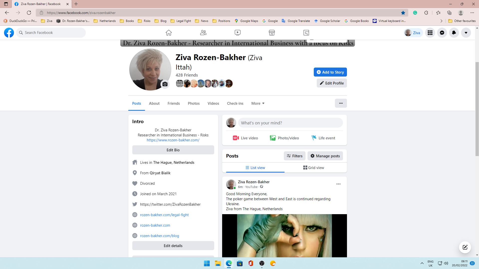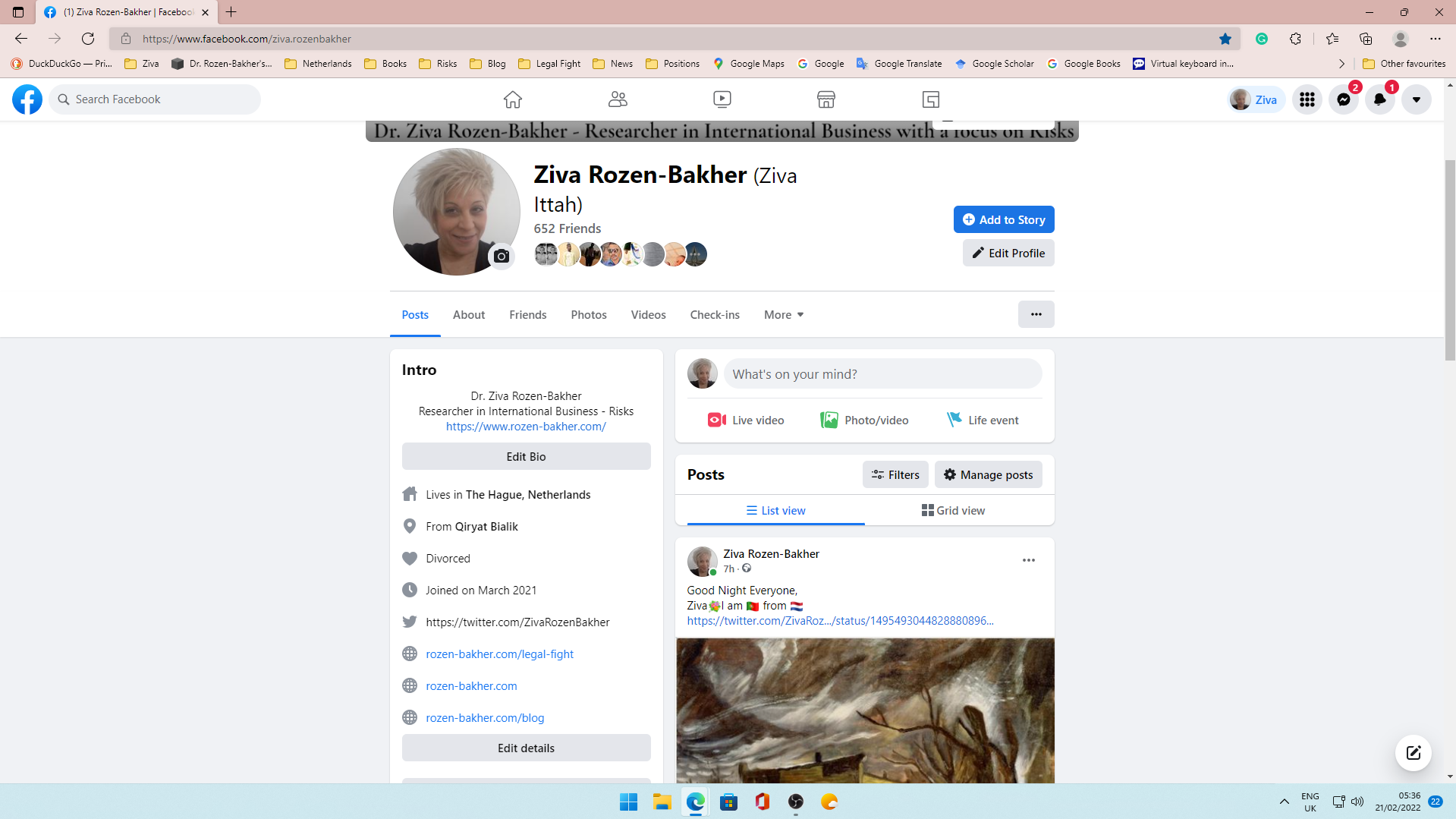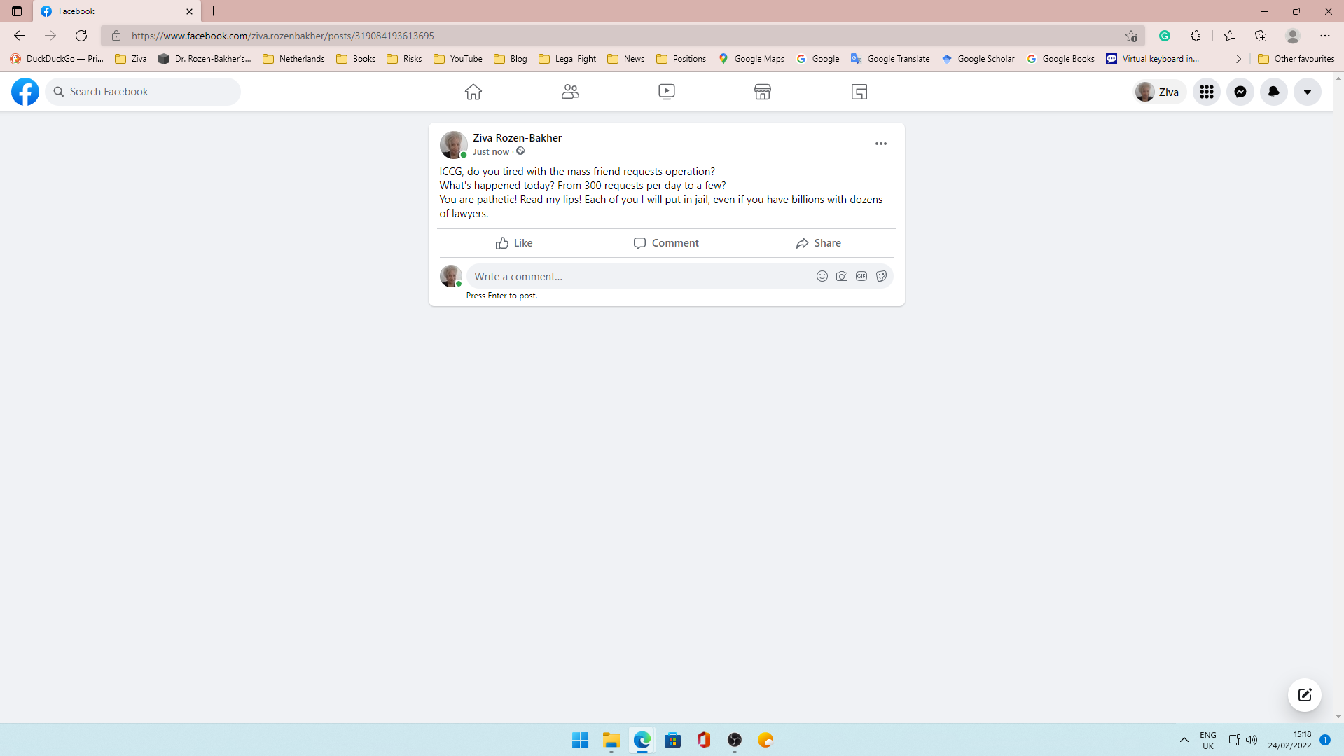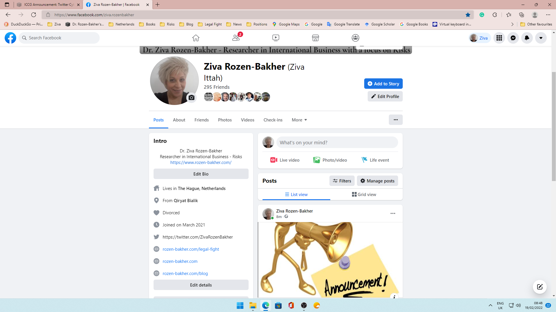 Dr. Rozen-Bakher got rare friend requests over one year from 03/2021 until mid-02/2022 when ICCG blocked the normal activity of Dr. Rozen-Bakher on Facebook, so during over one year, the number of friends was static at around 100 friends. However, since 18 February 2022, Dr. Rozen-Bakher got suddenly hundreds of friend requests on Facebook, especially from African people, despite that since the opening of her Facebook account in 03/2021, she got rare friend requests, while despite that all her posts on Facebook were opened to the public, Dr. Rozen-Bakher did not get any like or comment from the public about her interesting posts. Given that, it’s possible that since yesterday, her Facebook account was released from the blocking. Although likely, ICCG is continued with manipulation regarding Dr. Rozen-Bakher’s Facebook account in terms of sending friend requests and messages by fabricated accounts or by approaching specific persons to send friend requests or messages.