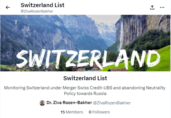 Dr. Ziva Rozen-Bakher’s Switzerland List on Twitter https://www.rozen-bakher.com/twitter-lists/switzerland-list