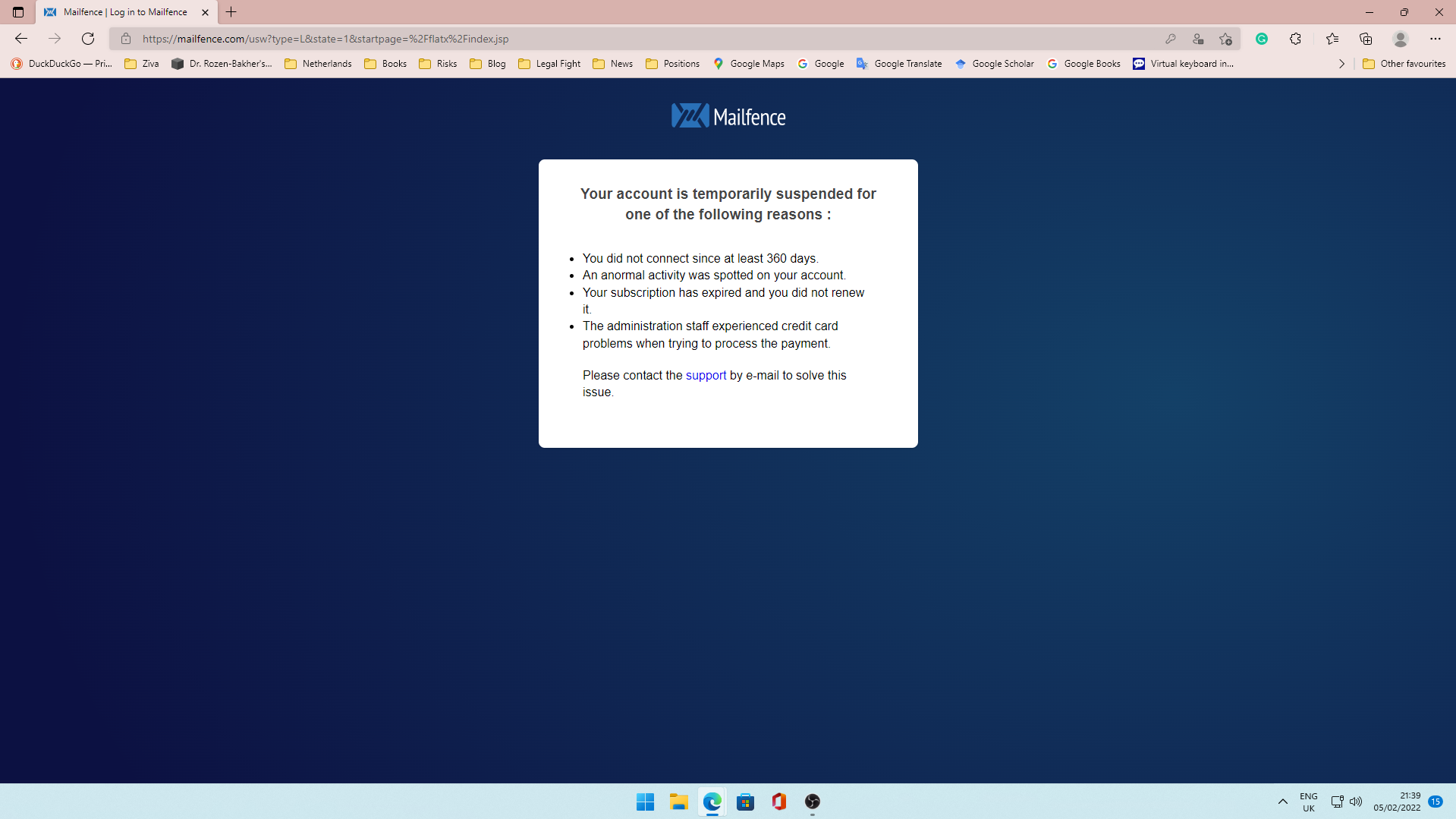 On 09 February 2022, 13:00, Dr. Rozen-Bakher revealed that the suspension of Mailfence was released, so she had access again to her Belgium mailbox of Mailfence. However, again, Mailfence did not inform her about the release, as the same that Mailfence did not inform her about the blocking.