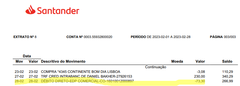 In the Bank Report Appeared the Direct Debit of EDP for 02/2023, despite that it does not appear on Direct Debit Page. EDP argued that they collected bills via Direct Debit and 'Direct Account', despite that there is no such thing a 'Direct Account'.