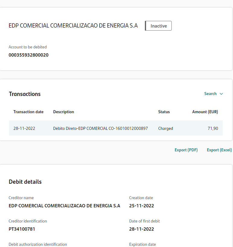 For Example, all the bills of NOS appeared in the page of the Direct Debit, while in related to EDP, only the bill from 11/2022 appeared in the page of the Direct Debit, while the transactions from 12/2022, 01/2023 and 02/2023 did not appear in the page of the Direct Debit but as Transactions in the Bank Account.