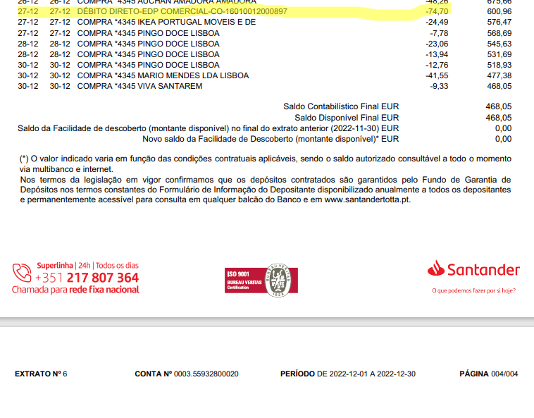 In the Bank Report Appeared the Direct Debit of EDP for 12/2022, despite that it does not appear on Direct Debit Page. EDP argued that they collected bills via Direct Debit and 'Direct Account', despite that there is no such thing a 'Direct Account'.
