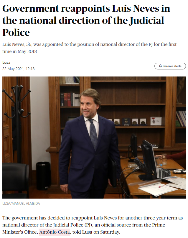 Mr. Luis Neves, the Current Director of Polícia Judiciária signed the closing of Complaint I when he was the Director of the National Counter-Terrorism Unit (NCTU), while in 05/2018, he was appointed to his current position.