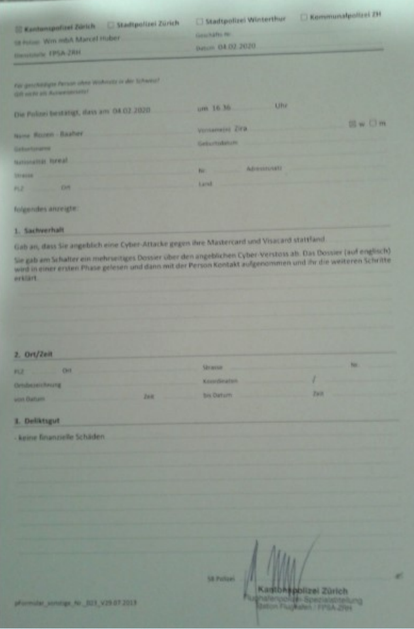 Complaint to Zurich Police, Switzerland - Viseca-Zürcher Kantonalbank Operation https://www.rozen-bakher.com/complaint-swiss