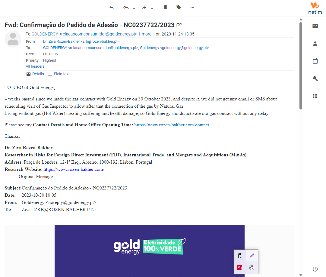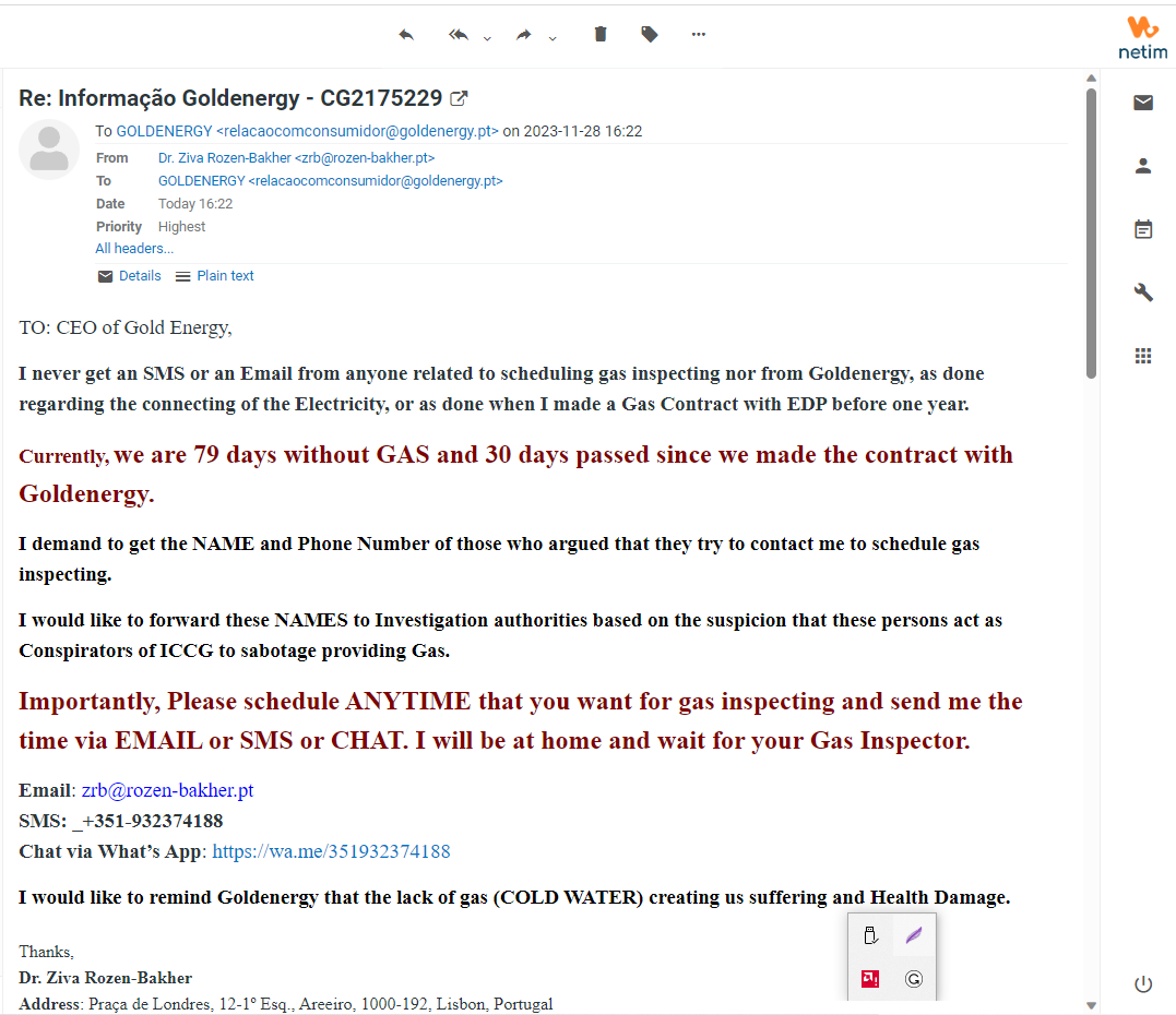 USA, E055, Microsoft (Outlook), Delivery-Entity, CM028, Complaint I on Yellow Book against Portuguese Social Security: Intentionally Rejected Application I, https://www.rozen-bakher.com/iccg-announcements/cm028