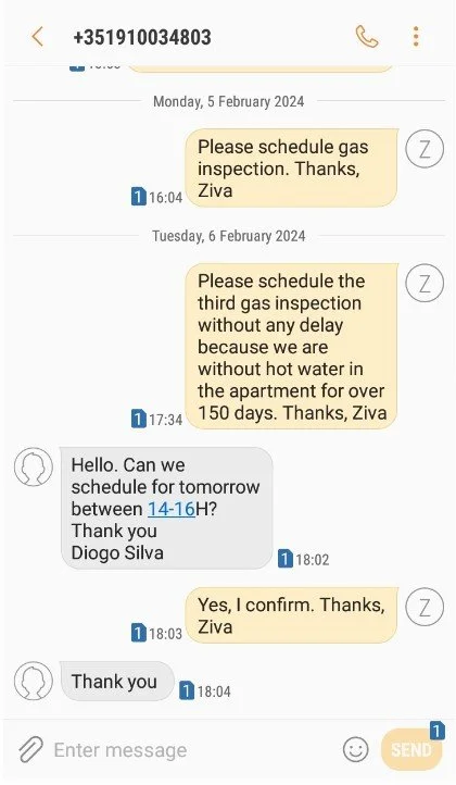 11 September 2023 - Current. Living in a Permanent Address in Lisbon, Portugal, still, without Electricity for over 50 Days and and without Gas for over XX Days due to Intentional Cutting Electricity and Gas by EDP alongside due to Intentional Delay in Connecting the Gas by Goldenergy, which occurred under the Open Eyes of the Portuguese Authorities.