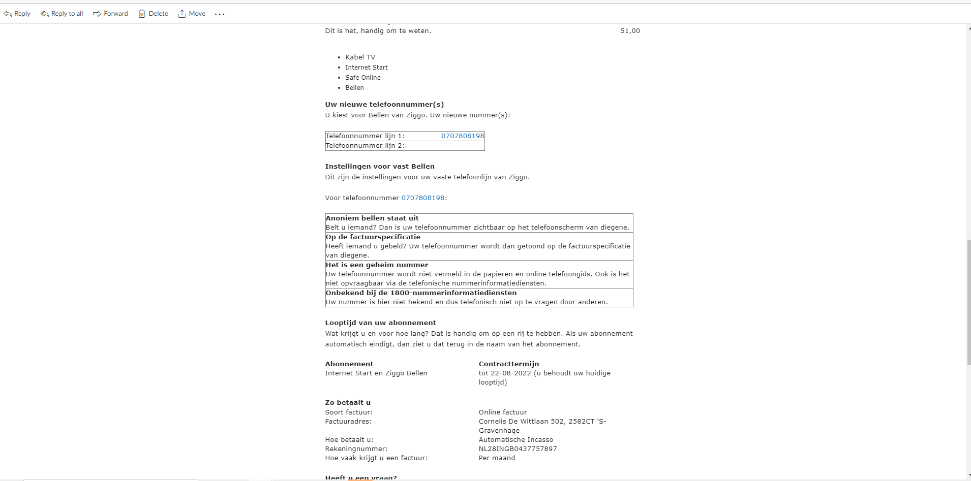 On 19 November 2021, Dr. Rozen-Bakher ordered a landline from Ziggo for Calls and Fax, and on 23 November 2021, the landline was activated.