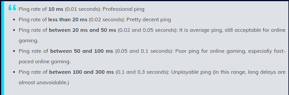 Ping Test Results