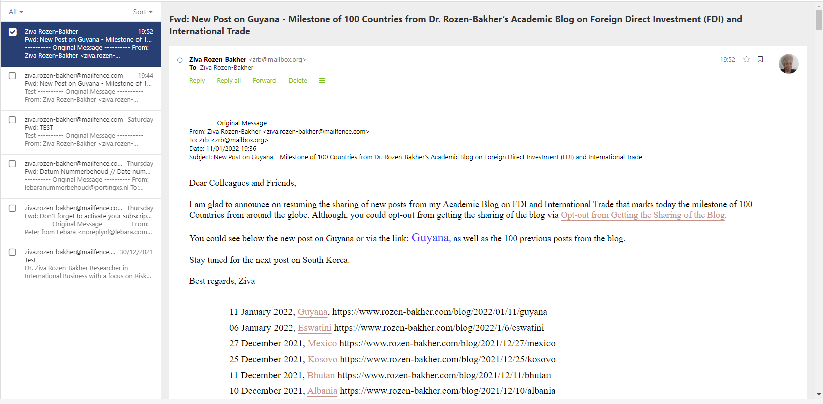 OP069, German Mailbox.Org Operation: Censorship Research Activity - Blocking Emails with Dr. Rozen-Bakher's Blog on FDI and International Trade via ‘Cyber-Server Unreachable’