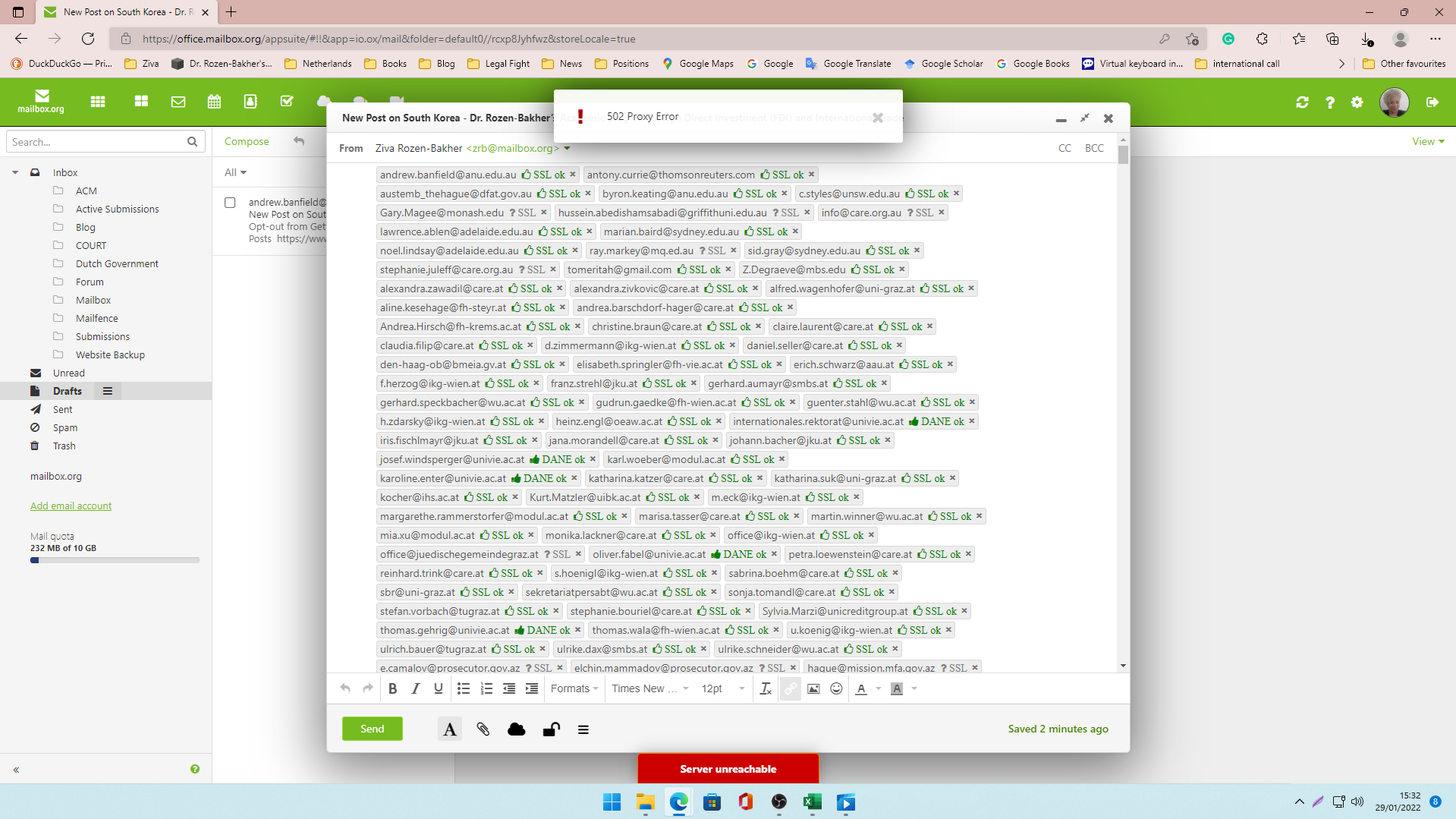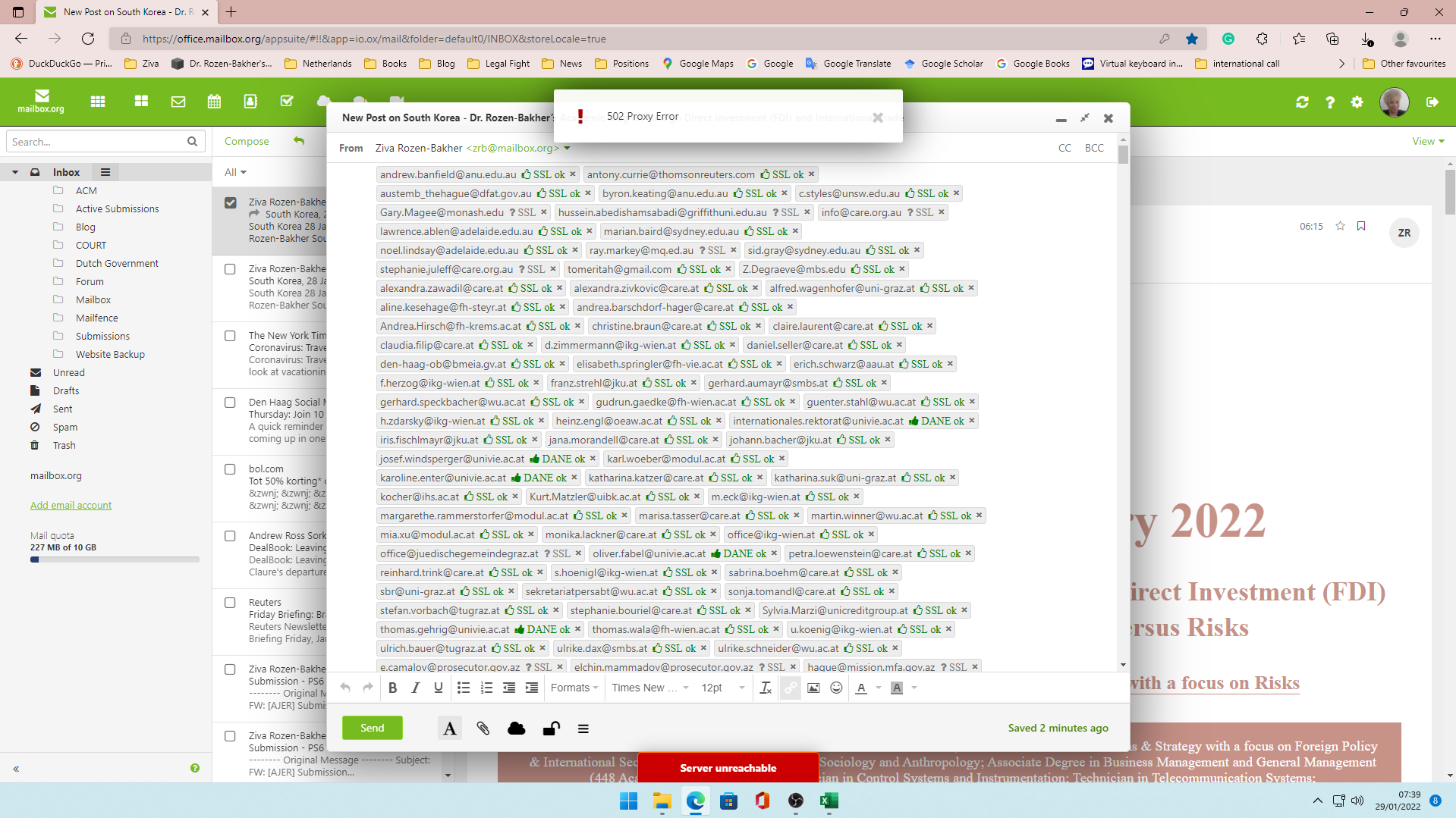 29 January 2022, 15:37. 7th Failure attempt to send the blog via Mailbox.Org due to ‘Cyber-Server Problem’, while incoming emails were received since the start of the ‘server problem’ even during the fourth failed attempt of the ‘Server Problem’.