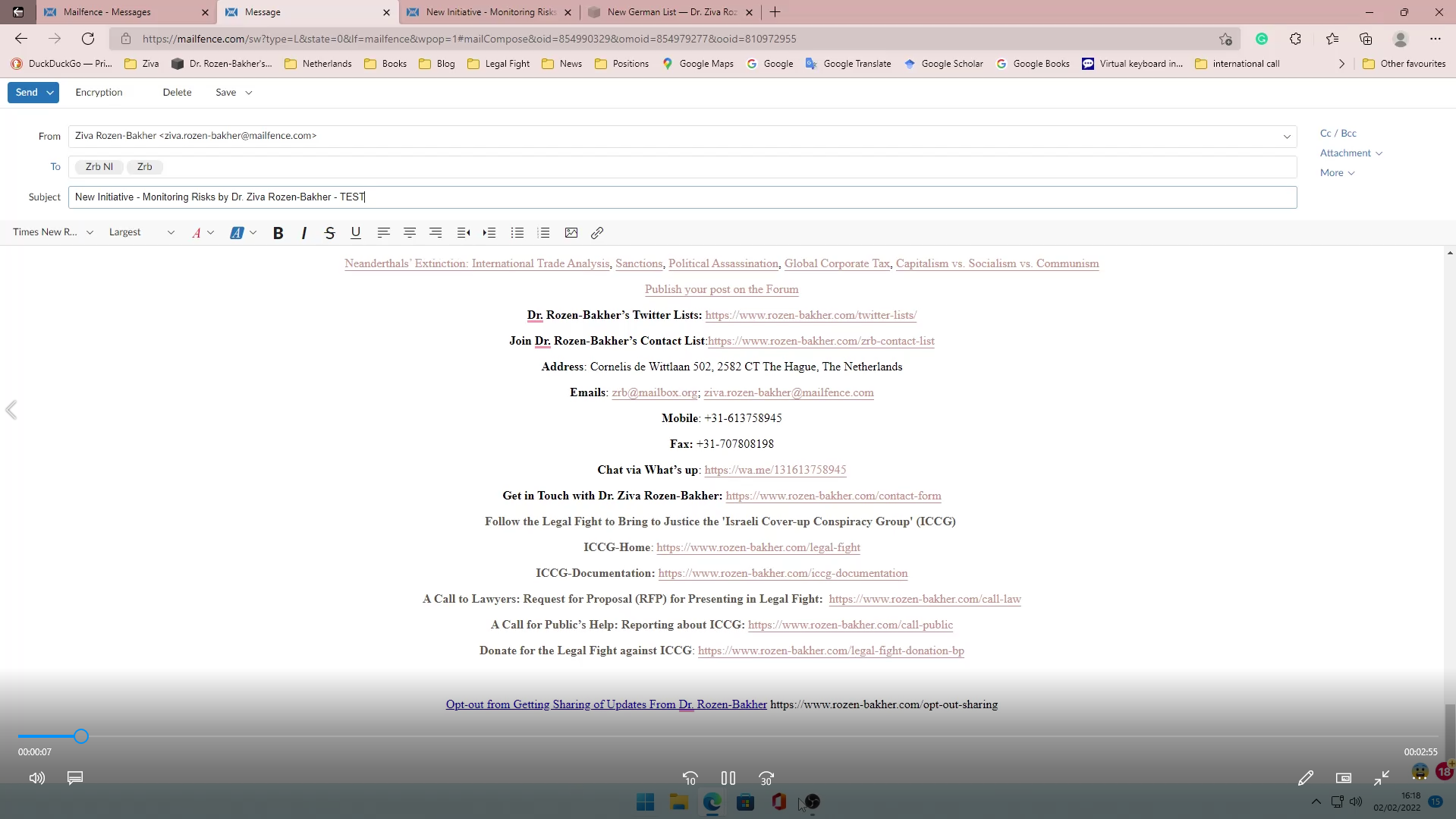 As part of the Obstruction of Justice, ICCG vanished the contact details of Dr. Rozen-Bakher and the details of the Legal Fight from the emails that were sent via the German mailbox of Mailbox.Org. This manipulation method of vanished parts from emails was repeated by ICCG in other mailboxes.