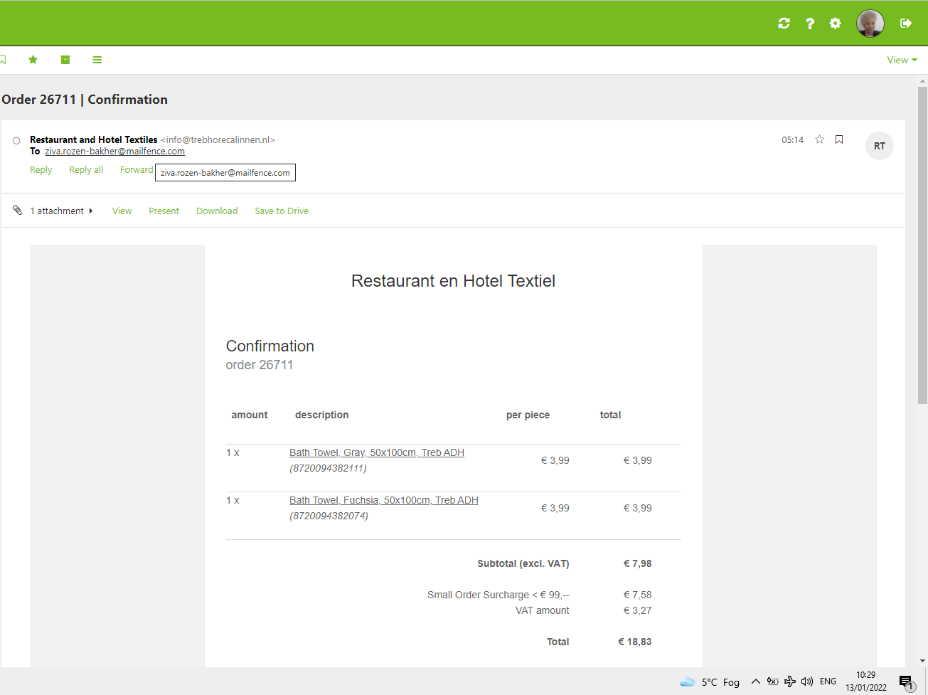 Order of Towels, 12 January 2022, info@trebhorecalinnen.nl