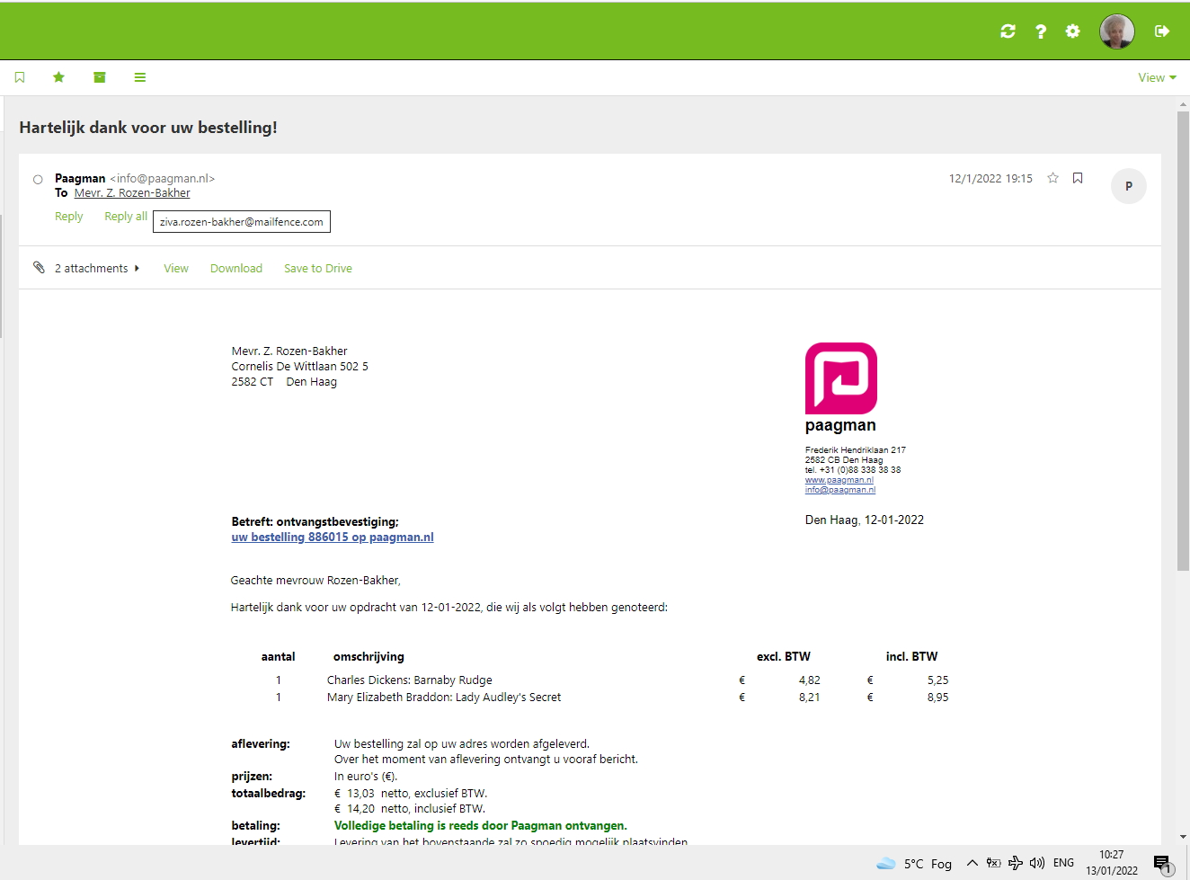 Order of Books from Paagman, 12 January 2022, info@paagman.nl