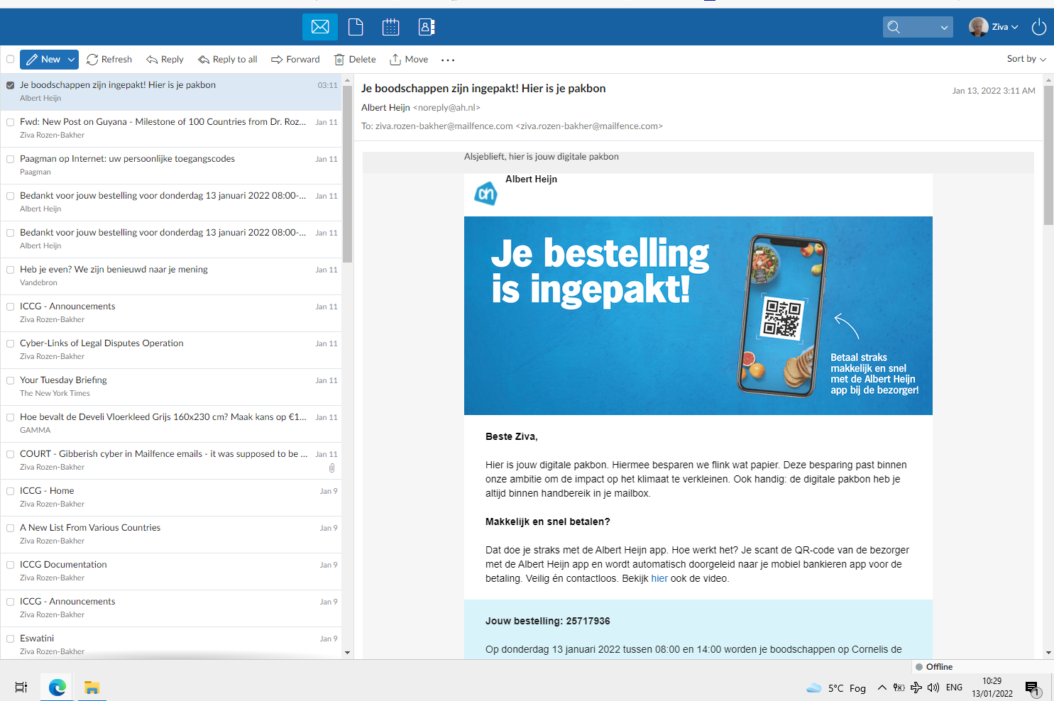 On 12 January 2022, Dr. Rozen-Bakher made order for two books from Paagman, as well as an order for towels. When she made the orders, she gave the Belgium mailbox of Mailfence, yet on that time, every email that was received in the Belgium mailbox of Mailfence was supposed also to forward to her German Mailbox.Org. However, both emails regarding the order books from Paagman and the order of towels did not receive in the Belgium mailbox of Mailfence, yet both emails were forward to the German Mailbox.Org, still, the both emails were received in the German Mailbox.Org on 13 January 2022 instead of on 12 January 2022, which may indicate on manipulation with these emails via the German Mailbox.Org. Importantly, this operation gives hard proof for the blocking email to Belgium mailbox of Mailfence, still, unclear if ICCG only blocked the emails to the Belgium mailbox of Mailfence or if ICCG also takeover on the order of Books from Paagman to make ‘Spy Manipulation’. Keep in mind, that exist Spy Detectors with ‘limited time’ in trying to prevent revealing them.