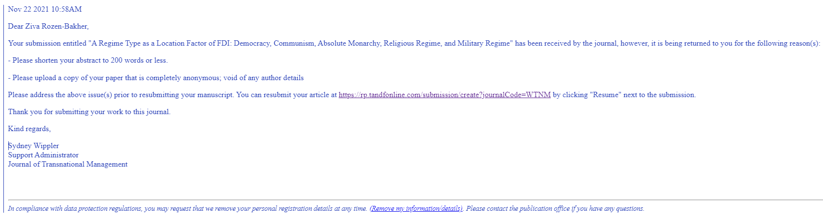 Journal: Journal of Transnational Management