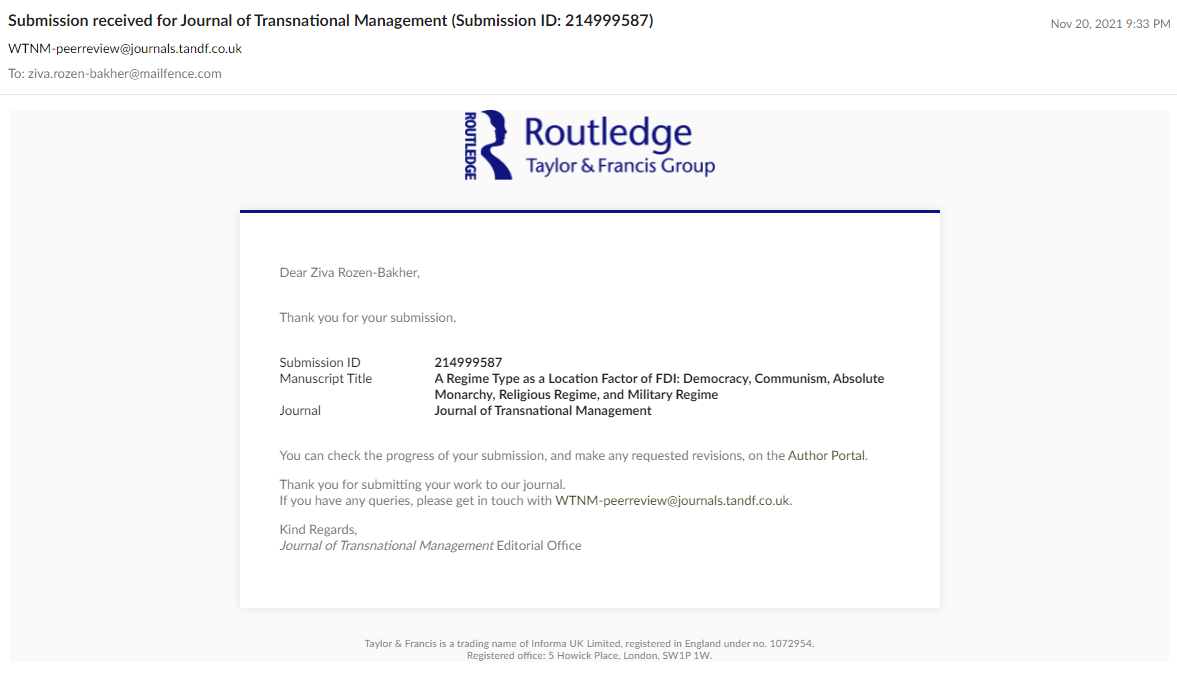 PD5 - Research Paper. Rozen-Bakher, Z. A Regime Type as a Location Factor of FDI: Democracy, Communism, Absolute Monarchy, Religious Regime, and Military Regime https://www.rozen-bakher.com/publications/pd5/