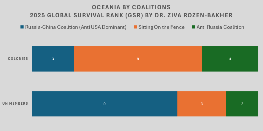 List of UN Members and Non-UN Members included in Oceania: Geopolitical Position, sorted by 2025 Global Survival Rank (GSR) by Dr. Ziva Rozen-Bakher
