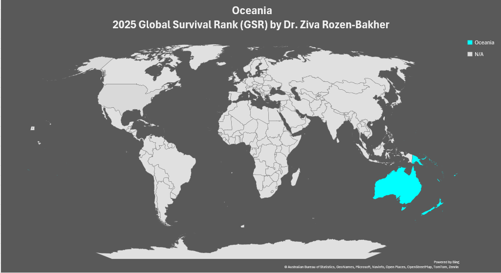 Oceania, 2025 Global Survival Rank (GSR) by Dr. Ziva Rozen-Bakher