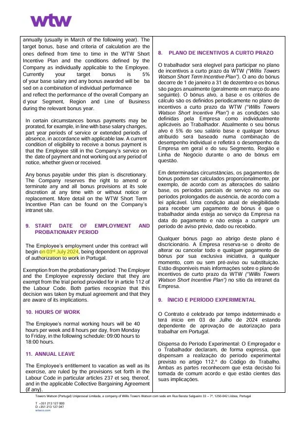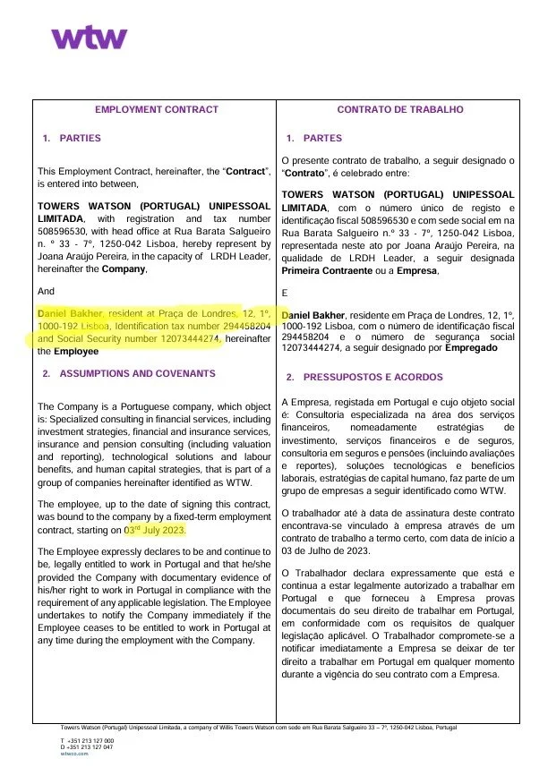 Daniel has a Permanent Working Contract with the prospect of a significant progressive increase in his salary in the coming years. Note, Daniel had a fixed term contract from July 2023 until July 2024, while a Permanent Contract since July 2024.